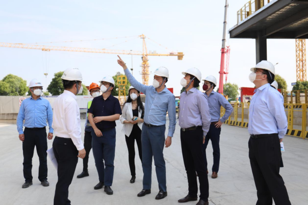 党委副书记、总裁桂恩亮一行走访了长三角绿洲智谷·赵巷园区项目施工现场,深入了解园区及工地常态化疫情防控和生产秩序恢复情况,认真听取园区在开发运营中遇到的困难和诉求,并与赵巷公司相关负责人进行了深入交流。他指出,随着全市恢复生产生活秩序,园区要坚持生产防疫两手抓、两不误。一是要按照市委市政府、市国资两委的部署和要求,严格落实园区及工地疫情防控措施,做好疫情防控应急预案,做到疫情防控不放松、不加码;二是要加强组织协调,抢抓施工进度,尽快打通施工堵点、难点问题;三是要稳步推进招商服务工作,优化园区租售策略,加快商贸招商提质提速步伐;四是要全力做好园区企业服务,落实好租金减免以及各类扶持政策,担当国企社会责任,在“防疫情、稳经济、保安全”方面作出积极贡献。